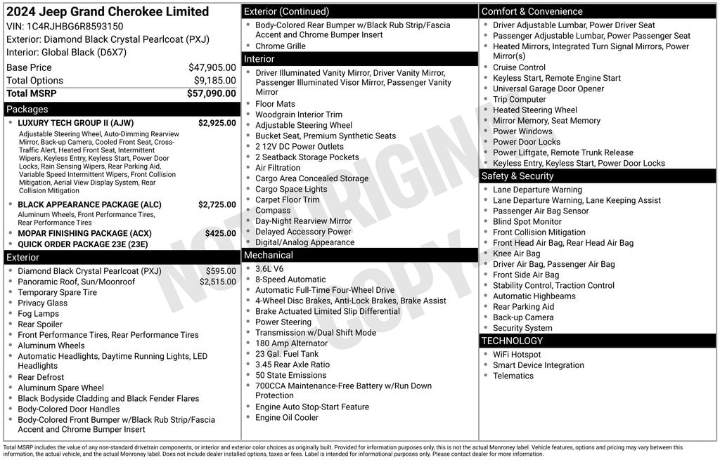Recent Arrival! Clean CARFAX. Certified. Diamond Black Crystal Pearlcoat 2024 Jeep Grand Cherokee Limited 4WD 8-Speed Automatic 3.6L V6 24V VVT