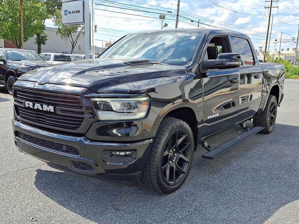 Certified. Diamond Black Crystal Pearlcoat 4D Crew Cab CARFAX One-Owner. 2023 Ram 21/29 City/Highway MPG 1500 Laramie 4WD 8-Speed Automatic EcoDiesel 3.0L V6 12" Touchscreen Display, 2nd Row In Floor Storage Bins, 3.92 Rear Axle Ratio, 4G LTE Wi-Fi Hot Spot, Apple CarPlay, Auto High Beam Headlamp Control, Bed Utility Group, Black Interior Accents, Blind Spot & Cross Path Detection, Body Color Exterior Mirrors, Body Color Front Bumper, Body Color Premium Power Mirrors, Body Color Rear Bumper w/Step Pads, Class IV Receiver Hitch, Connected Travel & Traffic Services, Connectivity - US/Canada, Disassociated Touchscreen Display, Dome Dual LED Reading Lamp, Driver Seat Memory, Dual-Pane Panoramic Sunroof, Electric Shift-On-Demand Transfer Case, Foam Bottle Insert (Door Trim Panel), For Details, Visit DriveUconnect.com, For More Info, Call 800-643-2112, Front Door Accent Lighting, Front LED Fog Lamps, Global Telematics Box Module (TBM), Google Android Auto, GPS Antenna Input, GPS Navigation, Grille Surround 3 Body Color Tex 2 Black, harman/kardon 19 Speaker Premium Sound, HD Radio, Heated Front Seats, Heated front seats, Integrated Center Stack Radio, Integrated Voice Command w/Bluetooth, Laramie Level B Equipment Group, Leather Trim 40/20/40 Bench Seat, LED Dome/Reading Lamp, LED Reflector Headlamps, MOPAR 4 Adjustable Cargo Tie-Down Hooks, MOPAR Spray In Bedliner, ParkSense Front/Rear Park Assist w/Stop, ParkSense Front/Rear Park Assist w/Stop (DISC), ParkView Rear Back-Up Camera, Pick-Up Box Lighting, Power 8-Way Driver & Passenger Seats, Power driver seat, Power passenger seat, Quick Order Package 28H Laramie (DISC), Radio: Uconnect 5 Nav w/12.0" Display, Rain Sensitive Windshield Wipers, RAM Grille Badge - Chrome, Rear Door Accent Lighting, Rear Power Sliding Window, Rear Underseat Compartment Storage, Rear Window Defroster, Remote Tailgate Release, SiriusXM Radio Service, SiriusXM w/360L, Sport Appearance Package, Sport Decal, Sport Performance Hood, Trailer Brake Control, USB Host Flip, Ventilated Front Seats, Ventilated front seats, Wheels: 22" x 9" Forged Aluminum.