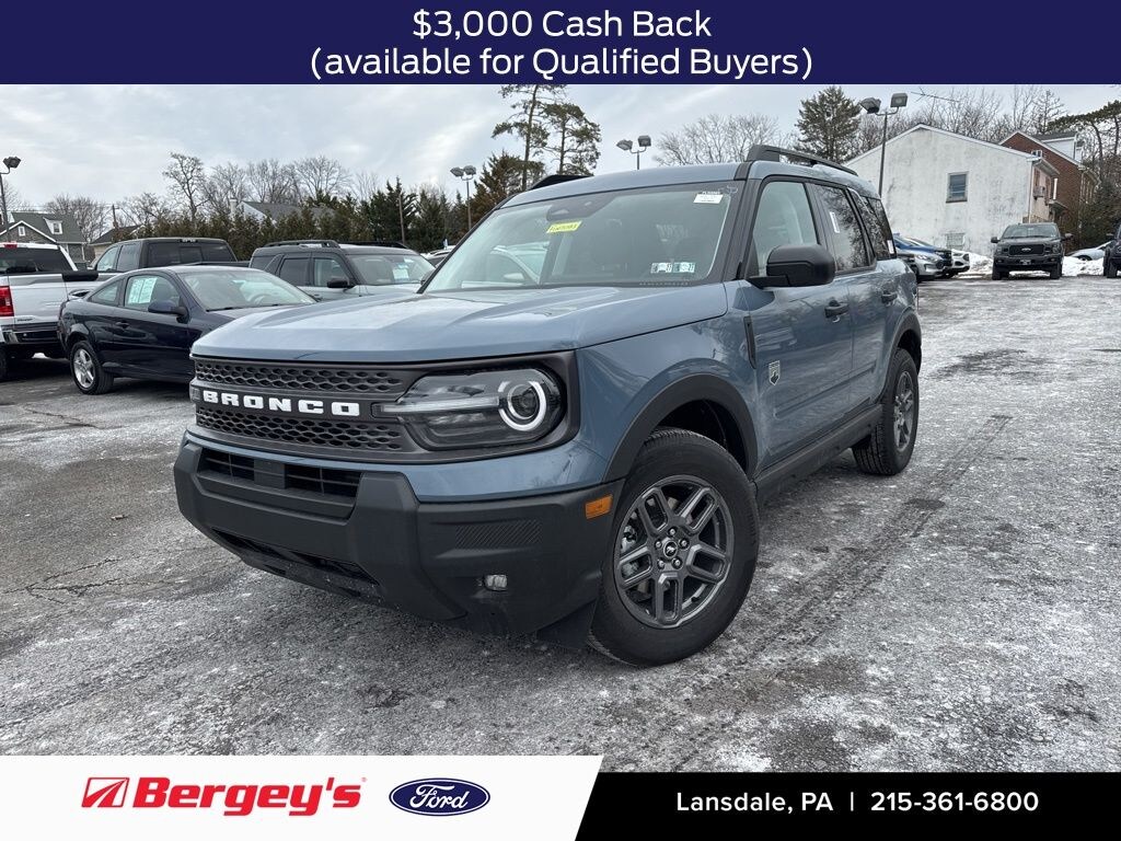 Azure Gray Metallic Tri-Coat 2025 Ford Bronco Sport Big Bend 4WD 8-Speed Automatic 1.5L EcoBoost Convenience Package, Front Driver/Passenger Seat Back Map Pockets, Heated 8-Way Power Driver's Seat, LED Fog Lamps, Premium Wrapped Steering Wheel, Universal Garage Door Opener (UGDO).