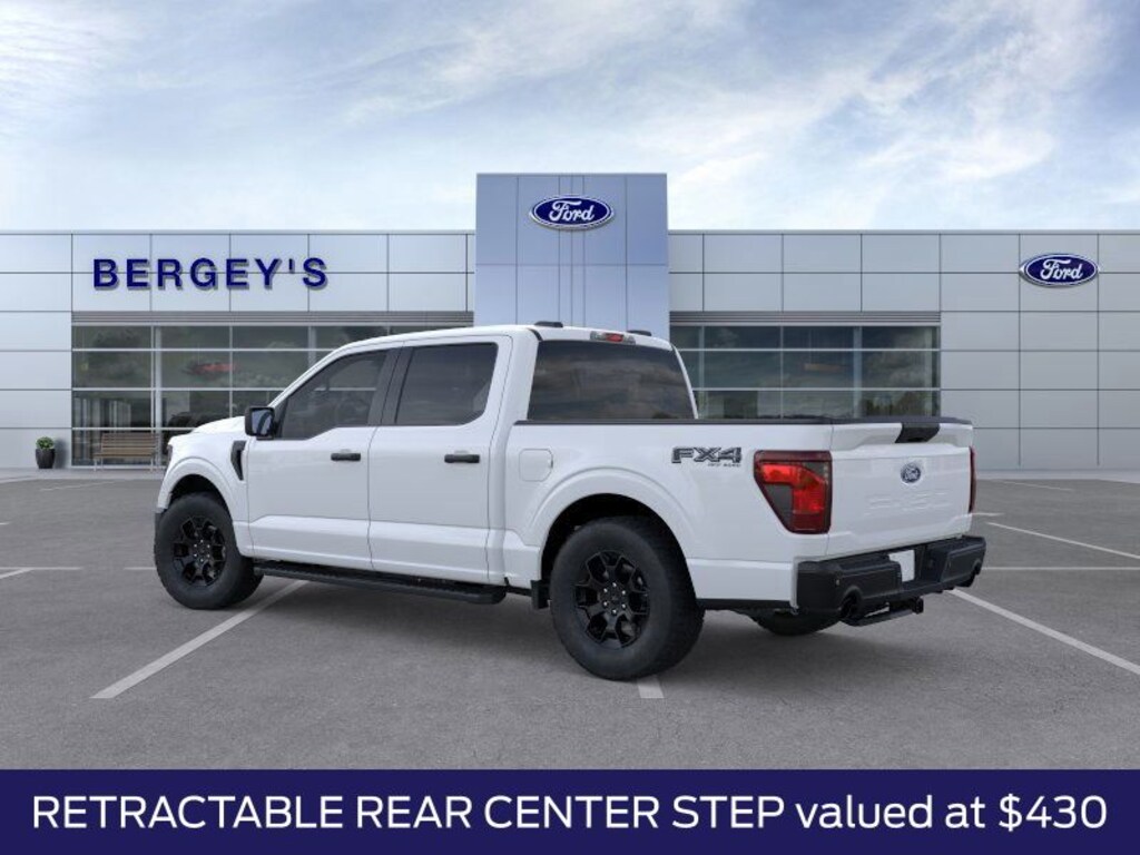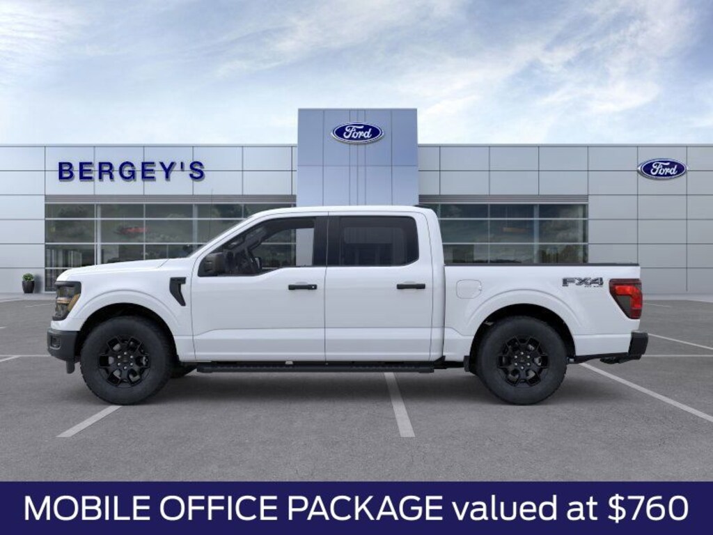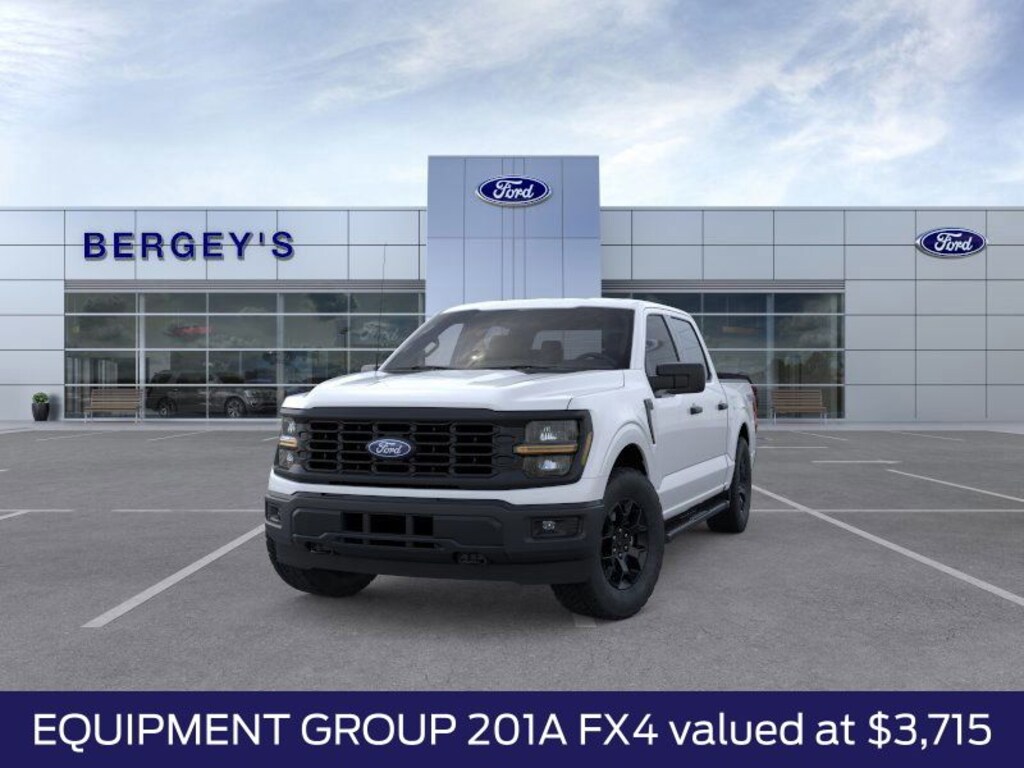 Oxford White 2025 Ford F-150 STX 4WD 10-Speed Automatic 2.7L V6 EcoBoost 4WD, 400W Cab & Bed Outlets, 6" Black Running Boards, Argent Front/Rear Bumper, Console Worksurface, Dual Exhaust w/Black Tips, Equipment Group 201A FX4, FX4 Box Decal, LED Fog Lamps w/LED Cornering Lamp, Mobile Office Package, Monotube Rear Shocks, Off-Road Tuned Front Shock Absorbers, STX Badge in Fender Vent, Tray Style Floor Liner, Unique Cloth 40/Console/40 Front Seats, Wheels: 18" Black Painted Aluminum.