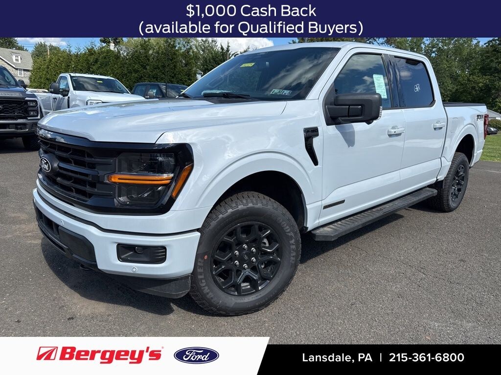 Space White Metallic 2025 Ford F-150 XLT 4WD 10-Speed Automatic 3.5L PowerBoost Full-Hybrid V6 3.5L PowerBoost Full-Hybrid V6, 4WD, 4x4 FX4 Off-Road Bodyside Decal, 6" Black Running Boards, Black Exterior Badging, Black Grille, Body-Color Front & Rear Bumpers, Console Worksurface, Dark Interior Appliques, Floor Shifter, FX4 Off-Road Package, Gray Box Side Decal, Hill Descent Control, Integrated Trailer Brake Controller, Mobile Office Package, Monotube Rear Shocks, Off-Road Tuned Front Shock Absorbers, Partitioned Lockable Rear Storage, Pro Power Onboard - 7.2KW, Rock Crawl Mode, Tough Bed Spray-In Bedliner, Tow/Haul Package, Tray Style Floor Liner w/o Carpet Mats, Unique Sport Cloth 40/Console/40 Front-Seats, Wheels: 18" Gloss Black, XLT Black Appearance Package. Price includes: $1000 - Bonus Customer Cash. Exp. 01/05/2026