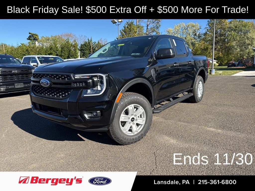 Shadow Black 2025 Ford Ranger XL 4WD 10-Speed Automatic EcoBoost 2.3L I4 GTDi DOHC Turbocharged VCT 4WD, Class IV Trailer Hitch Receiver, Electronic-Locking Rear Differential, Halogen Fog Lamps, LED Reflector Headlamps, STX Appearance Package, STX Fender Badge, Trailer Tow Package. Price includes: $2000 - Bonus Customer Cash. Exp. 01/05/2026