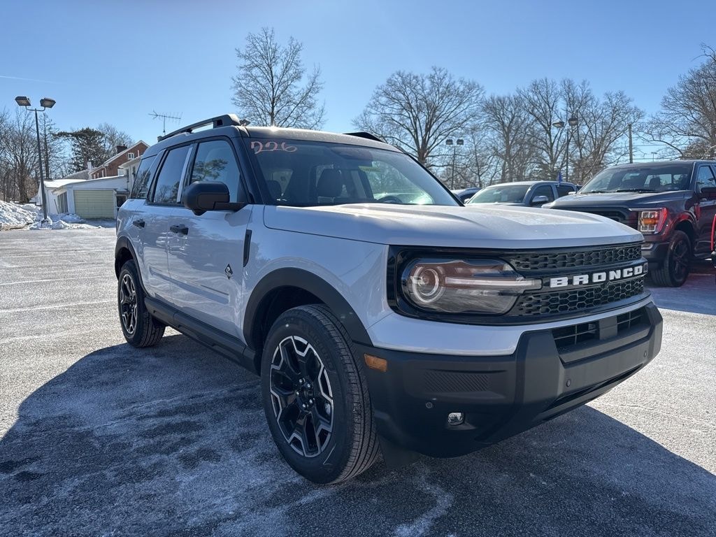 Space White Metallic 2026 Ford Bronco Sport Outer Banks 4WD 8-Speed Automatic 1.5L EcoBoost Connected Navigation (1-Year Included), Ford Connectivity Package (1-Year Included), Internet access capable: 5G Modem - Ford Connectivity Package, Outer Banks Tech Package+, Radio: HD w/B&O Sound System by Bang & Olufsen.