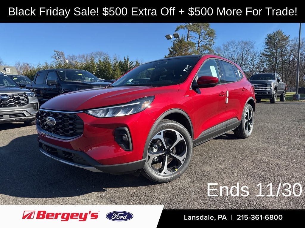 Rapid Red Metallic Tinted Clearcoat 2026 Ford Escape Hybrid ST-Line Select AWD eCVT 2.5L iVCT 2.5L iVCT, 10-Way Power Driver's Seat, 12.3" Productivity Screen in Instrument Cluster, 360-Degree Camera w/Split View, 6-Way Power Passenger Seat, Adaptive Cruise Control w/Stop-and-Go, Body Color Mirrors, Connected Navigation, Electronic Fuel Door Release, Equipment Group 400A, Ford Co-Pilot360 Assist 2.0, HD Radio, Intersection Assist, Memory Package, Neutral Towing Capability, Pedestrian Alert Sounder, Predictive Speed Assist, Radio: B&O Sound System by Bang & Olufsen, Rear Parking Sensor, Reverse Brake Assist, SYNC 4 w/Enhanced Voice Recognition, Tech Pack #2, Wireless Charging Pad.
