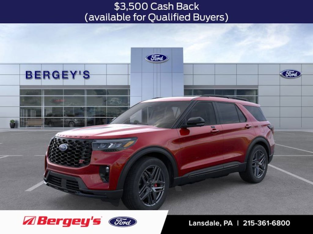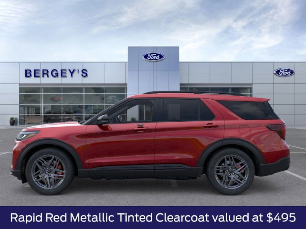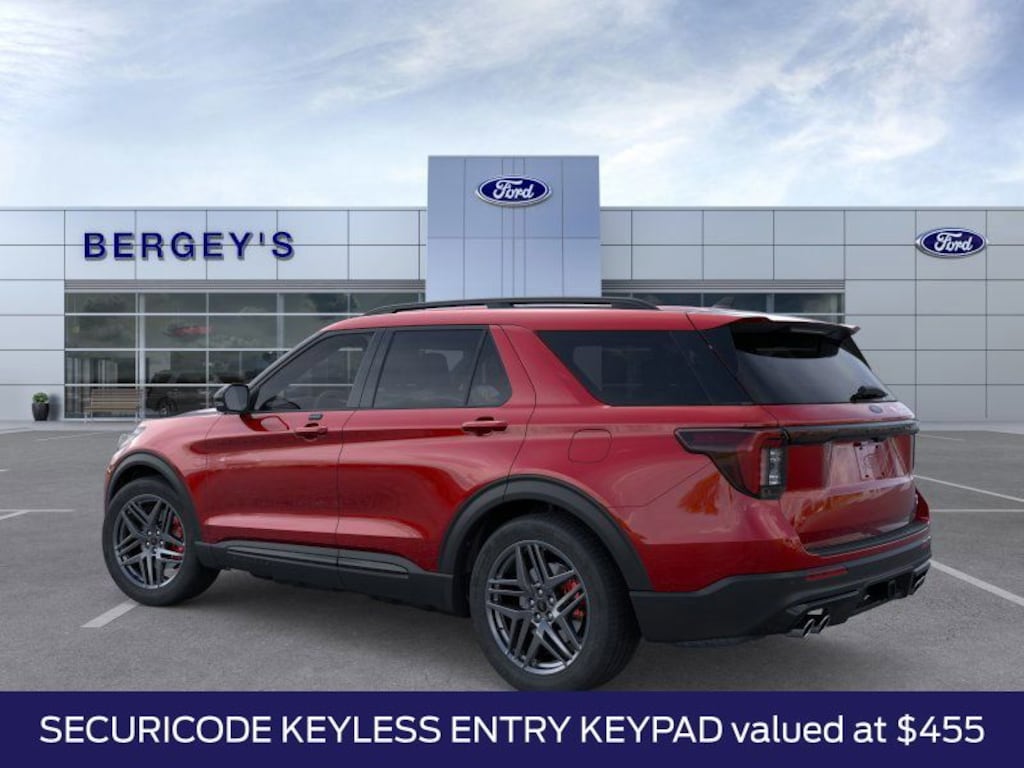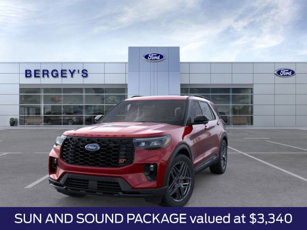 Rapid Red Metallic Tinted Clearcoat 2026 Ford Explorer ST 4WD 10-Speed Automatic 3.0L EcoBoost V6 4WD, Equipment Group 400A Standard Package, Heated/Ventilated Miko Suede Captain's Chairs, Multicontour Seats with Front Active Motion, Panoramic Fixed Glass Roof with Power Shade, Radio: B&O Sound System by Bang & Olufsen, Radio: B&O Sound System by Bang and Olufsen, Remote Control Front Windows, Sun and Sound Package, Wheels: 21" Magnetite-Painted Aluminum.