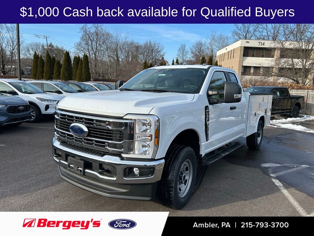Oxford White 2026 Ford F-350SD XL 4WD 10-Speed Automatic 7.3L V8 PFI OHV 16V Federal 335hp. Reading Truck 9' Classic II Steel Single Wheel Service Body.