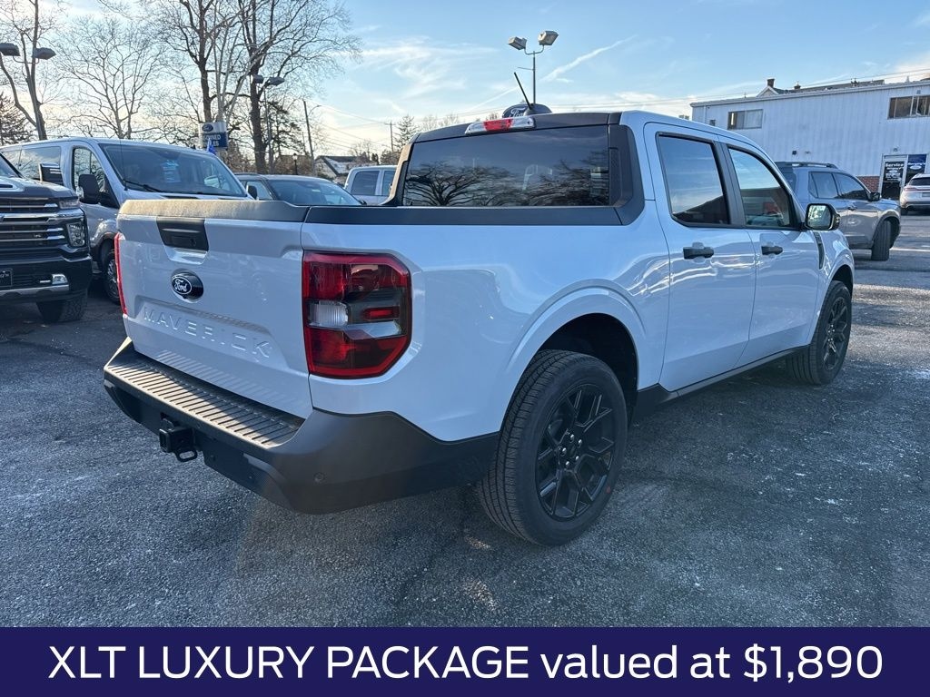 White Metallic 2026 Ford Maverick XLT AWD CVT 2.5L I-4 Hybrid 2.5L I-4 Hybrid, 2.91 Axle Ratio, 4K Tow Package, Black Appearance Package, Black Grille, Black Interior Accents, Black Painted Mirrors, Equipment Group 301A, Ford Connectivity Package (1-Year Included), Heated Mirror with Painted Black Skull Caps, Heated Seats, LED Box Lighting, Pro Power Onboard - 400W, Radio: AM/FM Stereo with 6 Speakers, Remote Start System, SiriusXM with 360L, Soft Vinyl Wrapped Heated Steering Wheel, SYNC 4 with Enhanced Voice Recognition, Trailer Brake Controller, Trailer Hitch (class III) 2" Receiver, Unique Cloth Front Bucket Seats, Unique Cloth Front Bucket Seats with Black Appearance, Upgraded Cooling Fan, Wheels: 17" Carbonized Gray Painted Aluminum, Wheels: 19" Black Painted Aluminum, XLT Luxury Package.