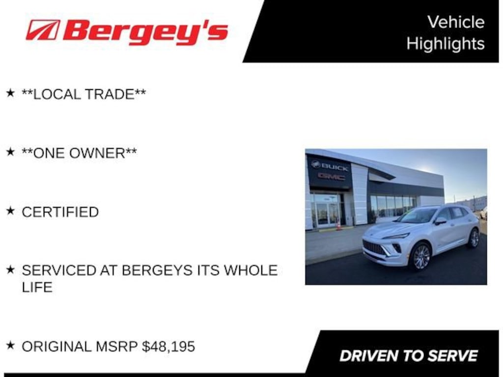 BEAUTIFUL ENVISION AVENIR AWD! ORIGINAL MSRP $48,195 LOCAL TRADE, ONE OWNER, CLEAN CARFAX, LOW MILES!! PURCHASED AND TRADED BACK IN AT BERGEYS! WE HAVE DONE ALL THE SERVICE MAINTENANCE ON THIS VEHICLE! COMES FULLY SERVICED W/NEW PA INSPECTION, OIL CHANGE SERVICE AND A FRESH DETAIL! GM CERTIFIED WITH AN AWSOME WARRANTY! DON'T LET THIS ONE GET AWAY!!