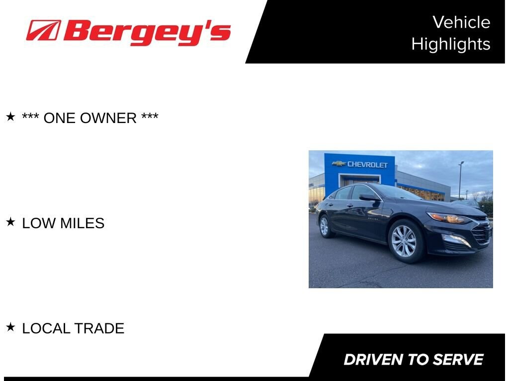 Cruise in style with the sleek and sophisticated 2022 Chevrolet Malibu LT, now available at Bergeys Chevrolet in Colmar, PAyour go-to spot for the best Chevy sedan deals in Montgomery County. With its sporty design, impressive fuel efficiency, and comfort-packed interior, the Malibu LT is the perfect pick for drivers searching for a 2022 Chevy Malibu LT for sale near Colmar, PA or comparing top midsize sedans in the area. Whether you're commuting, road-tripping, or simply enjoying the ride, this Malibu LT delivers smooth performance, smart technology, and standout value. Visit Bergeys Chevrolet in Colmar to take this stylish sedan for a test drive and see why its a favorite among Pennsylvania drivers!