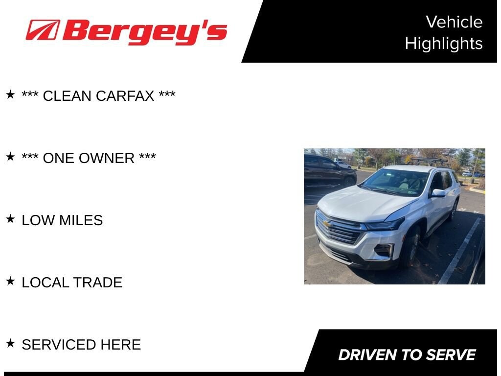 Step up to full-size comfort and capability with this 2023 Chevrolet Traverse LT Leather, proudly offered at Bergeys Chevrolet in Colmar, PA the smart alternative to shopping in Doylestown, Sellersville, or Quakertown. This premium LT Leather model elevates every drive with its refined leather-appointed interior, advanced Chevy Safety Assist features, powerful V6 performance, and spacious three-row seating built for todays busy families. Whether youre upgrading for daily commuting, weekend road trips, or growing passenger needs, the Traverse LT delivers the perfect balance of luxury, technology, and practicality. Skip the competition and experience unmatched selection and customer care at Bergeys Chevrolet in Colmar, where your next Traverse is ready to impress.