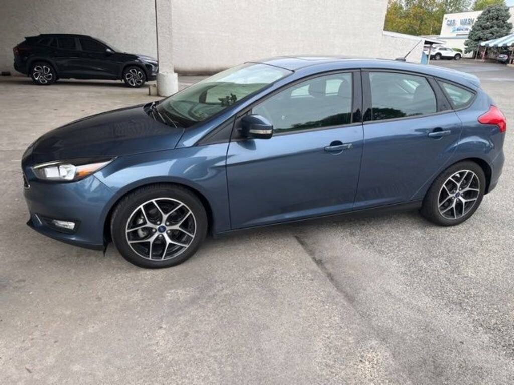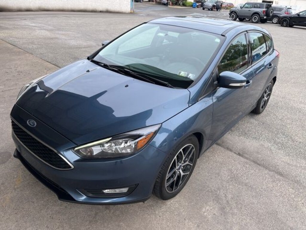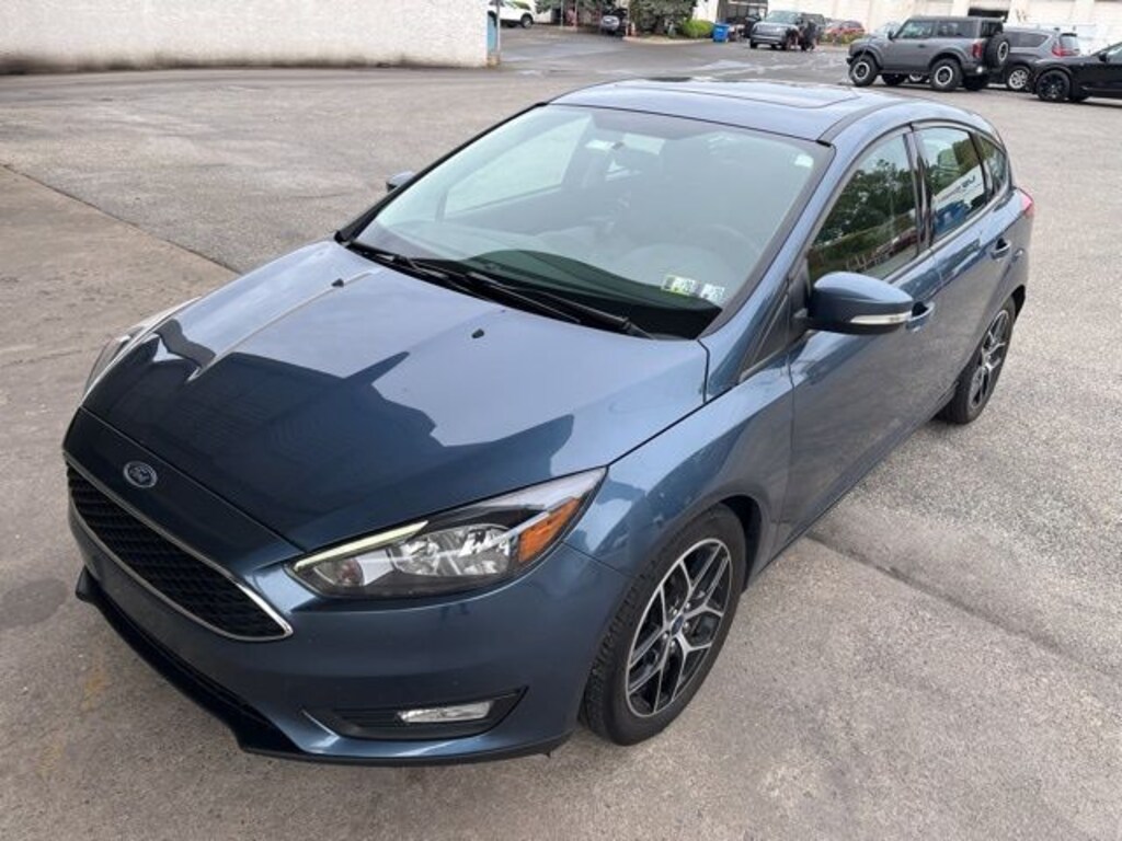 10 Speakers, 17" Machined-Aluminum Wheels, 4-Wheel Disc Brakes, ABS brakes, Air Conditioning, Alloy wheels, AM/FM radio: SiriusXM, AppLink/Apple CarPlay and Android Auto, Automatic temperature control, Brake assist, Bumpers: body-color, CD player, Cloth Front Bucket Seats, Compass, Delay-off headlights, Driver door bin, Driver vanity mirror, Dual front impact airbags, Dual front side impact airbags, Electronic Stability Control, Emergency communication system, Equipment Group 250A, Exterior Parking Camera Rear, Four wheel independent suspension, Front anti-roll bar, Front Bucket Seats, Front Center Armrest, Front dual zone A/C, Front fog lights, Front reading lights, Fully automatic headlights, Illuminated entry, Knee airbag, Low tire pressure warning, Occupant sensing airbag, Outside temperature display, Overhead airbag, Overhead console, Panic alarm, Passenger door bin, Passenger vanity mirror, Power door mirrors, Power moonroof, Power steering, Power windows, Radio data system, Radio: Sony AM/FM Single-CD/MP3-Capable, Rear anti-roll bar, Rear Parking Sensors, Rear window defroster, Rear window wiper, Remote keyless entry, Security system, SelectShift, Speed control, Split folding rear seat, Spoiler, Steering wheel mounted audio controls, SYNC 3 Communications & Entertainment System, Tachometer, Telescoping steering wheel, Tilt steering wheel, Traction control, Trip computer, Turn signal indicator mirrors, Variably intermittent wipers. CARFAX One-Owner. Blue Metallic 2018 Ford Focus SEL FWD 6-Speed Automatic with Powershift 2.0L I4 DGI Ti-VCT