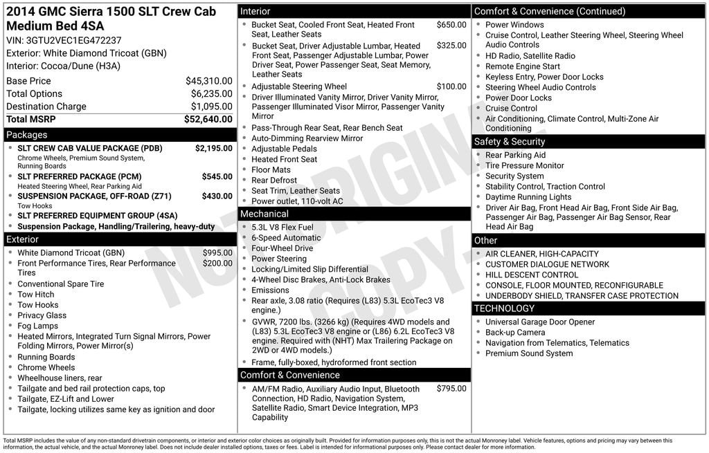 2014 White Diamond Tricoat GMC Sierra 1500 4WD EcoTec3 5.3L V8 Flex Fuel 6-Speed Automatic Electronic with Overdrive Reviews: