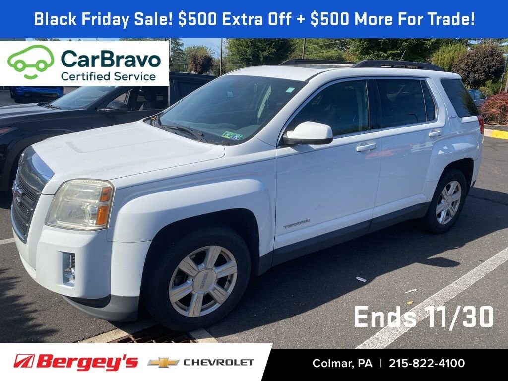 Explore comfort, efficiency, and reliability with the 2014 GMC Terrain SLE-2 for sale at Bergeys Chevrolet in Colmar, PA. This well-equipped compact SUV features a spacious interior, advanced safety options, a fuel-efficient engine, and convenient technology like Bluetooth connectivity, a premium audio system, and a rearview camera. Ideal for commuters and families, the Terrain SLE-2 delivers a smooth, confident ride with standout GMC styling. If youre searching for a used GMC Terrain in Montgomery County, PA, Bergeys Chevrolet offers competitive pricing, trusted customer service, and a hassle-free buying experience. Visit our Colmar dealership today to test-drive this clean and dependable 2014 GMC Terrain SLE-2.