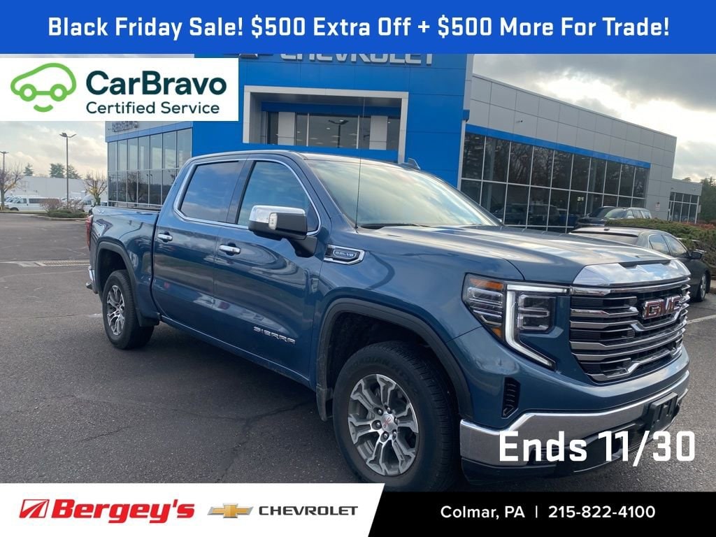 Command the road in the 2024 GMC Sierra 1500 SLT, a premium pickup that truck shoppers comparing options in Doylestown and Quakertown cant help but notice. With its bold design, upscale interior, advanced towing tech, and powerful engine options, the Sierra 1500 SLT outshines many Doylestown competitors while delivering more refinement and capability than several Quakertown truck alternatives. If youre searching for the best 2024 GMC Sierra 1500 SLT deals near Doylestown or Quakertown, this standout full-size truck brings luxury, strength, and modern performance together for a driving experience that's tough to beat.