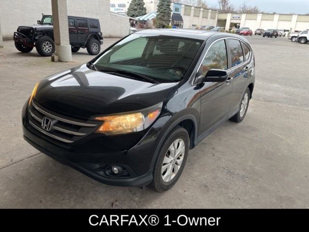 AWD, 17 10-Spoke Alloy Wheels, 4-Wheel Disc Brakes, 4.44 Axle Ratio, 6 Speakers, ABS brakes, Air Conditioning, Alloy wheels, AM/FM radio, AM/FM/CD Audio System w/6 Speakers, Brake assist, Bumpers: body-color, CD player, Cloth Seat Trim, Compass, Delay-off headlights, Driver door bin, Driver vanity mirror, Driver's Seat Mounted Armrest, Dual front impact airbags, Dual front side impact airbags, Electronic Stability Control, Exterior Parking Camera Rear, Four wheel independent suspension, Front anti-roll bar, Front Bucket Seats, Front fog lights, Front reading lights, Illuminated entry, Low tire pressure warning, Occupant sensing airbag, Outside temperature display, Overhead airbag, Overhead console, Panic alarm, Passenger door bin, Passenger seat mounted armrest, Passenger vanity mirror, Power door mirrors, Power moonroof, Power steering, Power windows, Radio data system, Rear anti-roll bar, Rear seat center armrest, Rear window defroster, Rear window wiper, Remote keyless entry, Security system, Speed control, Speed-sensing steering, Speed-Sensitive Wipers, Split folding rear seat, Steering wheel mounted audio controls, Tachometer, Telescoping steering wheel, Tilt steering wheel, Traction control, Trip computer, Variably intermittent wipers, AWD. CARFAX One-Owner. Black 2014 Honda CR-V EX AWD 5-Speed Automatic 2.4L I4 DOHC 16V i-VTEC