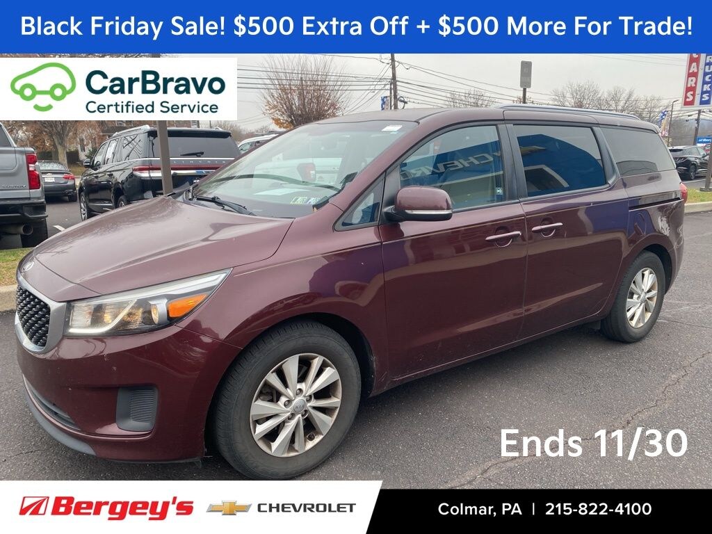 Upgrade your family's ride with the roomy and reliable 2016 Kia Sedona LX, now available at Bergeys Chevrolet in Colmar, PA a smart pick for minivan shoppers comparing options in Lansdale, Quakertown, and Warrington. This Sedona LX offers generous seating, convenient tech features, smooth handling, and Kias's reputation for long-lasting dependability, making it perfect for school runs, road trips, and everyday errands. With its well-maintained condition and unbeatable value, this 2016 Sedona LX stands out as a practical and budget-friendly choice for growing families. Stop by Bergey's Chevrolet in Colmar, PA today and let's make a deal that drivers from Lansdale, Quakertown, and Warrington will love!