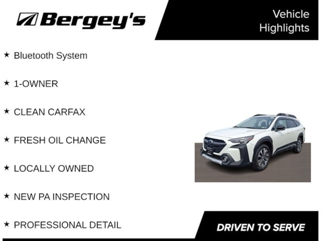 Crystal White Pearl 2025 Subaru Outback Limited AWD CVT Lineartronic 2.5L 4-Cylinder DOHC 16V Bluetooth System, 1-OWNER, CLEAN CARFAX, FRESH OIL CHANGE, LOCALLY OWNED, NEW PA INSPECTION, PROFESSIONAL DETAIL.