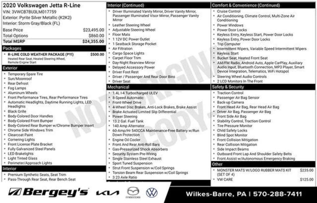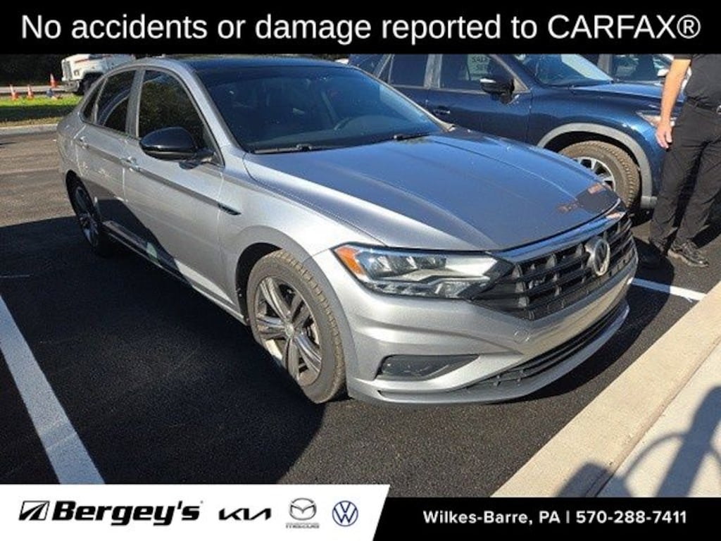 Silver Metallic 2020 Volkswagen Jetta R-Line FWD 8-Speed Automatic with Tiptronic 1.4L TSI Storm Gray/Black Premium Synthetic.