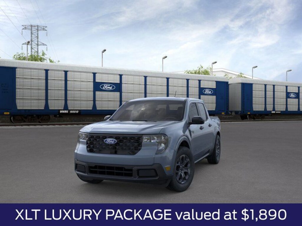Azure Gray Metallic Tri-Coat 2026 Ford Maverick XLT AWD 8-Speed Automatic EcoBoost 2.0L I4 GTDi DOHC Turbocharged VCT 4K Tow Package, Auto High Beams, BLIS w/Cross-Traffic Alert & Trailer Coverage, Equipment Group 302A, Exit Warning, Ford Co-Pilot360, Heated Mirror w/Painted Black Skull Caps, Heated Seats, Intersection Assist, Lane-Keeping System, LED Box Lighting, Power Glass Manual-Folding Mirrors, Pre-Collision Assist w/Automatic Emergency Braking, Pro Power Onboard - 400W, Rear Cross Traffic Braking, Rear Parking Sensors, Rear-View Camera, Remote Start System, Soft Vinyl Wrapped Heated Steering Wheel, Trailer Brake Controller, Trailer Hitch (Class III) 2" Receiver, Upgraded Cooling Fan, XLT Luxury Package.