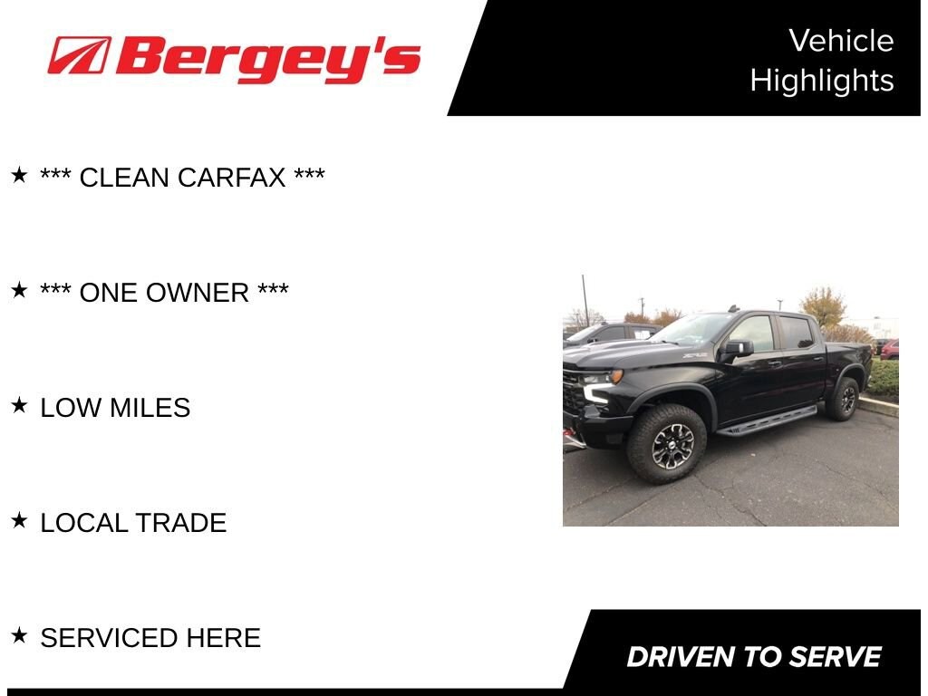 Discover the rugged capability and premium performance of the 2022 Chevrolet Silverado 1500 ZR2 for sale at Bergeys Chevrolet in Colmar, PA. Built for serious off-road adventures and everyday reliability, this Silverado ZR2 features a powerful V8 engine, advanced Multimatic DSSV dampers, locking front and rear differentials, and aggressive ZR2 styling. Inside, enjoy a refined cabin with advanced tech, including Apple CarPlay, Android Auto, and Chevy Safety Assist. If youre shopping for a used Chevrolet Silverado 1500 ZR2 in Montgomery County, PA, Bergeys Chevrolet offers exceptional service, competitive pricing, and a hassle-free buying experience. Visit us in Colmar to test-drive this impressive 2022 Silverado ZR2 today.
