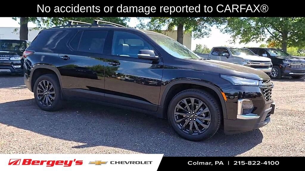 Hop into this sleek 2023 Chevrolet Traverse RS at Bergeys Chevrolet in Colmar, PAwhere sporty design meets family-ready utility! The RS trim brings bold black accents, 20-inch dark aluminum wheels, and a premium Bose 10-speaker sound system, making your daily drive feel like a night out. Inside, enjoy the Jet Black interior with Spice Red accents, advanced tech like HD Surround Vision and adaptive cruise control, and space for up to seven passengers with plenty of cargo behind the third row. For drivers in Montgomery County seeking style, tech, and SUV functionality, this Traverse RS at Bergeys Chevrolet in Colmar is your perfect matchvisit today to take it for a spin!