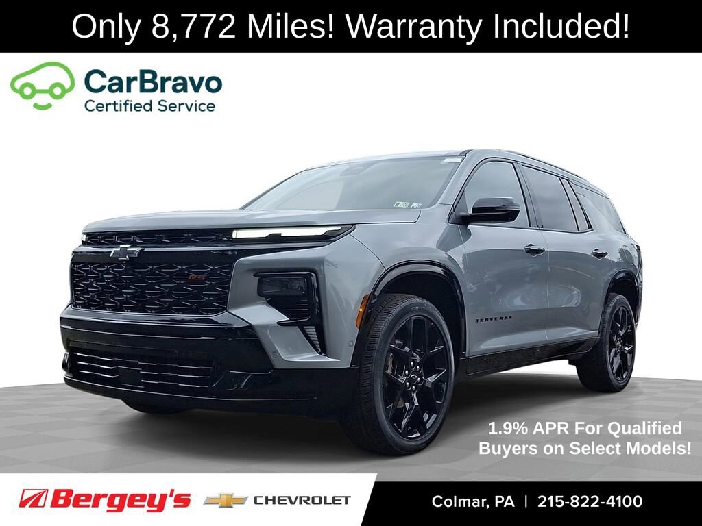 Get ready to make a statement with the all-new **2024 Chevrolet Traverse RS**, available now at Bergeys Chevrolet in Colmar, PA where style meets space, and every drive becomes a destination. This premium three-row SUV roars to life with its 328-hp turbocharged 2.5 L engine and comes equipped with bold 22 gloss-black wheels, blacked-out exterior trim, red-accent leather-appointed seats, and a panoramic sunroof to let the light in. With cutting-edge tech like a massive 17.7 touchscreen, wireless Apple CarPlay/Android Auto, and standard Super Cruise hands-free driving assistance, the Traverse RS effortlessly blends sporty flair with family-ready versatility. Families in Montgomery County looking for a standout SUV need look no further stop by Bergeys Chevrolet in Colmar today and experience the 2024 Traverse RS for yourself!