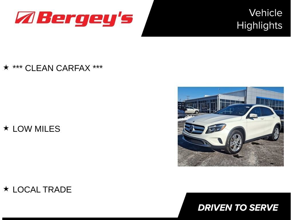 Experience luxury, style, and all-weather confidence with this 2017 Mercedes-Benz GLA 250 4MATIC now available at Bergeys Chevrolet in Colmar, PAa sleek, premium compact SUV that delivers refined performance and standout comfort. This GLA 250 4MATIC features Mercedes intelligent all-wheel-drive system, a turbocharged engine, premium interior finishes, and advanced tech that elevate every drive through Montgomery County and beyond. Perfect for commuters and adventure-seekers alike, this Mercedes-Benz GLA 250 for sale in Colmar, PA offers exceptional value, luxury craftsmanship, and the sporty versatility drivers love. Visit Bergeys Chevrolet today to test-drive this beautifully maintained 2017 GLA 250 4MATIC before its gone!