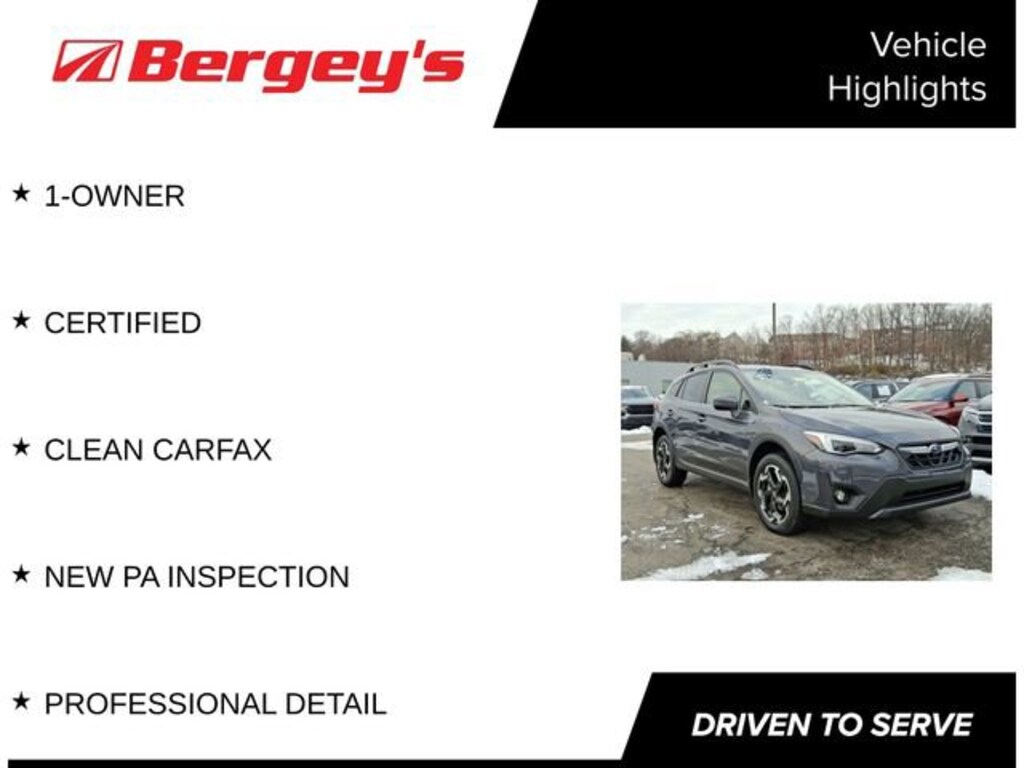 1-OWNER, CERTIFIED, CLEAN CARFAX, NEW PA INSPECTION, PROFESSIONAL DETAIL, harman/kardon Speaker System, Moonroof Package 2, Power Moonroof, Radio: Subaru STARLINK 8.0 Multimedia Nav System, Subaru STARLINK Smartphone Integration. Certified. Certification Program Details: *6-Month/6,000-Mile Bumper-to-Bumper Limited Warranty*, whichever comes first, in addition to any remaining original factory Bumper-to-Bumper warranty. See participating dealer and warranty booklet for limited warranty eligibility and coverage details, including limitations and exclusions. *Except for non-GM vehicles in the State of California, where coverage will be provided by a vehicle service contract. Odometer is 25058 miles below market average!